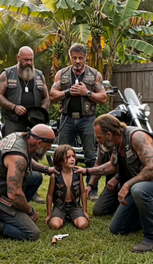 The boy didn’t get up right away. He stayed in the dust and cried — not the way kids cry for attention. The other way. Deep. Chest-heaving. The kind of crying that sounds like something already broken trying not to fall apart completely. “Please…” he choked, lifting his face toward the nearest biker.